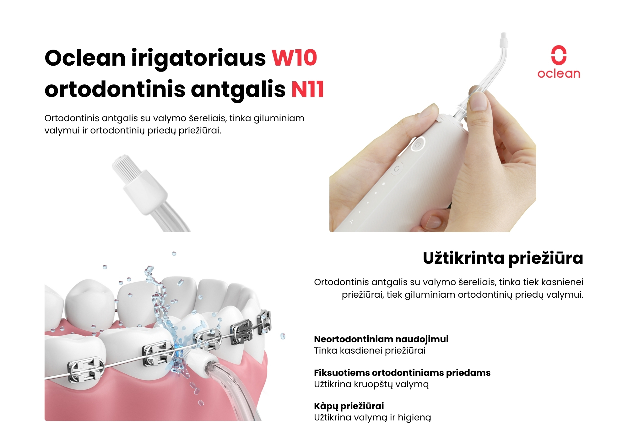 Ortodontinis pakaitinis antgalis skirtas W10 irigatoriui. Tinka burnos priežiūrai nešiojant ortodontinius įtaisus ar breketus.